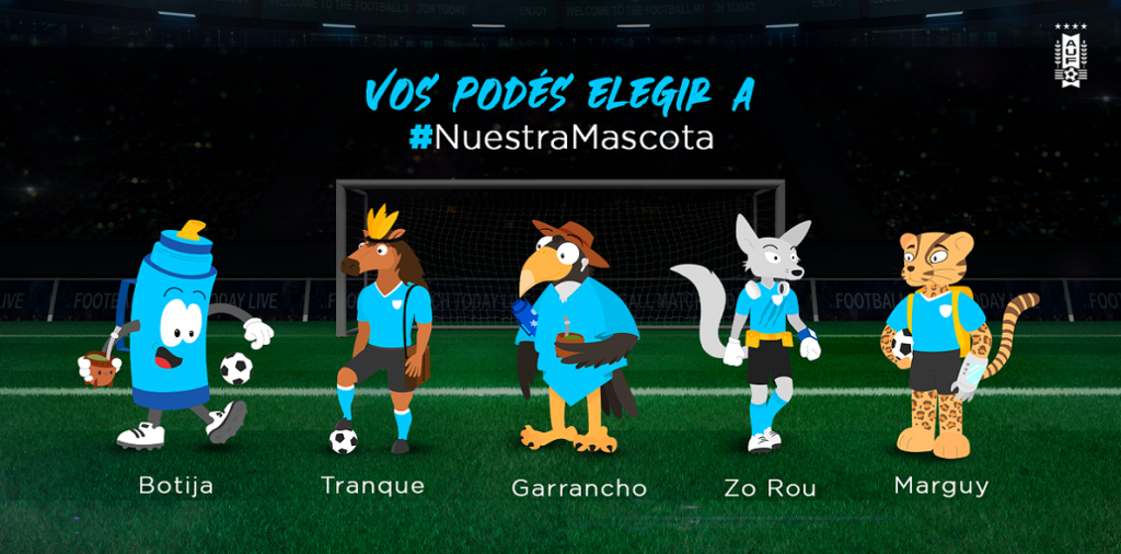 En un proceso que llevó varios meses de investigación, estudio, planificación, creatividad y donde se involucró a varias agencias de publicidad, la Asociación Uruguaya de Fútbol pone a disposición de la población a través de las Redes Sociales oficiales de la mascota (adjuntas al final de la nota) las cinco finalistas a ser votadas en el siguiente enlace: https://encuestas.demoscopia.net/Nuestramascota